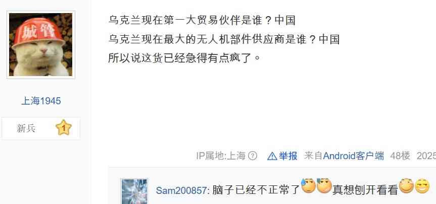 → q2825842: 某樓就別睜眼說瞎話。中國這幾年擺明站在俄羅斯那一方,不只睜隻眼閉隻眼賣無人機到俄羅斯,還和俄方有不少私下的技術合作(直到這幾個月才比較收斂)。反而烏克蘭要買中國無人機的成本和難度高多了26F 12/24 11:09