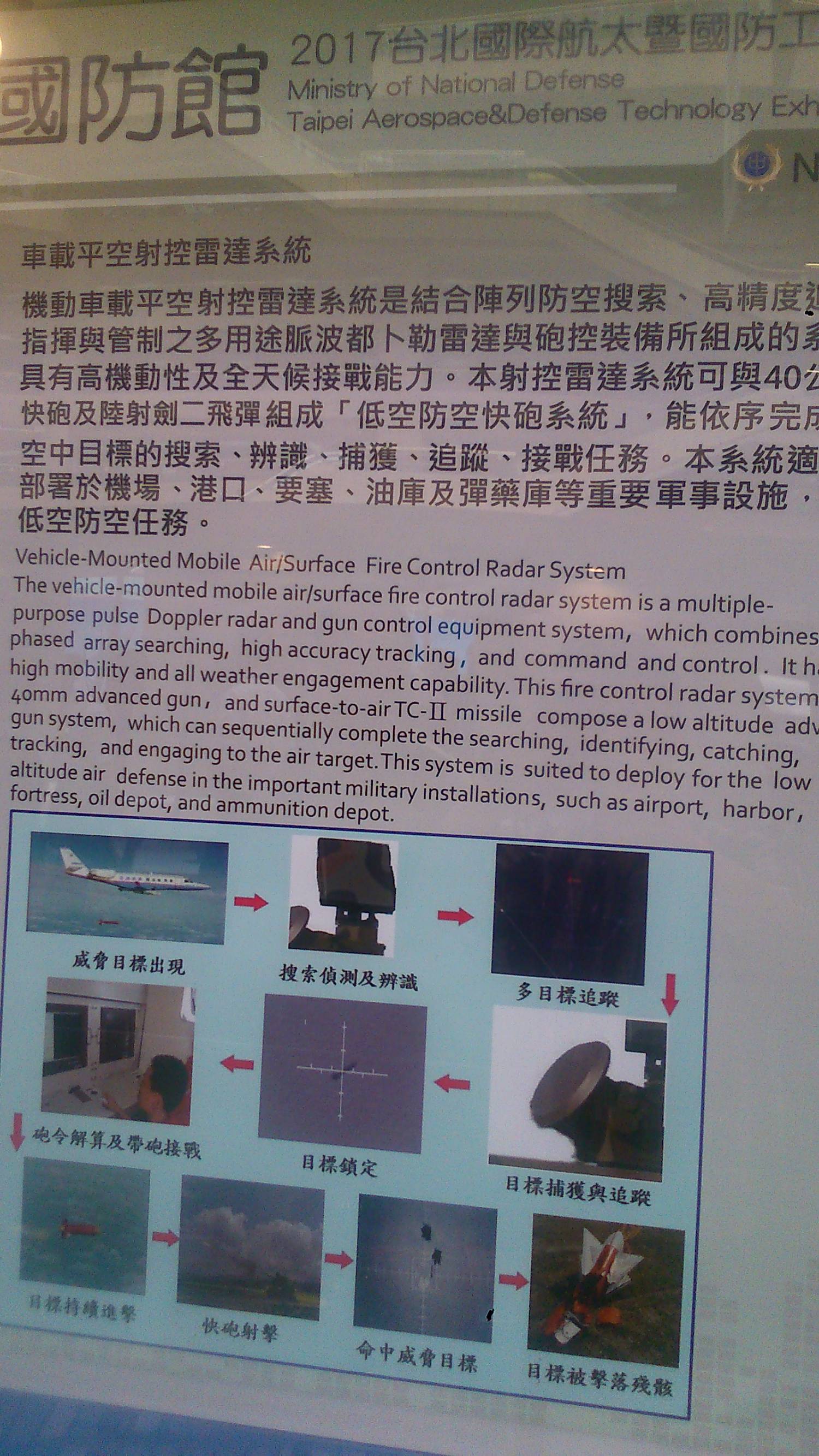 完整的 35 快砲系統,是由35公厘雙管防空快砲丶麻雀飛彈及天兵雷達組成,目前國軍現役