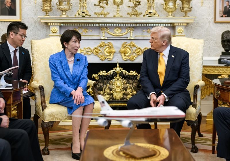 川普在白宮會見高市早苗,卻當場提了珍珠港事件。(翻攝自The White House)