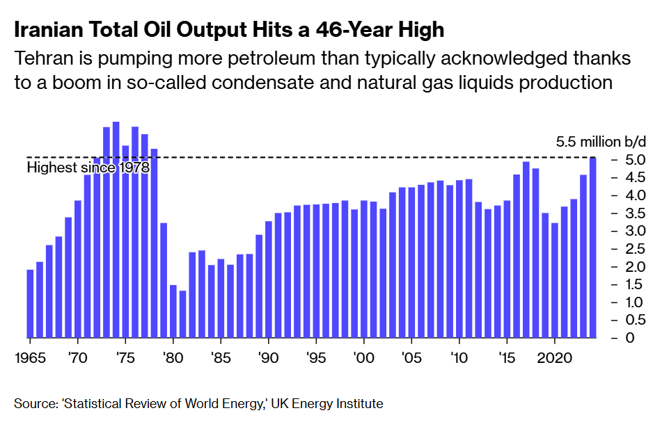 關鍵在於,伊朗是在資源強勢的情況下進入這場戰爭,其總液態石油產量達到46年來的新