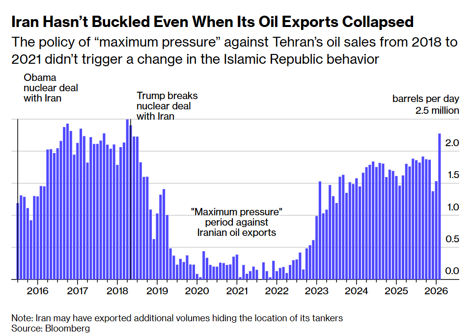 還額外出口約每日100萬桶的其他液態石油及精煉產品。若要迫使德黑蘭讓步,川普將必