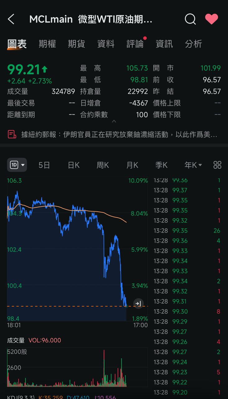 消息出來油價開始一路狂跌