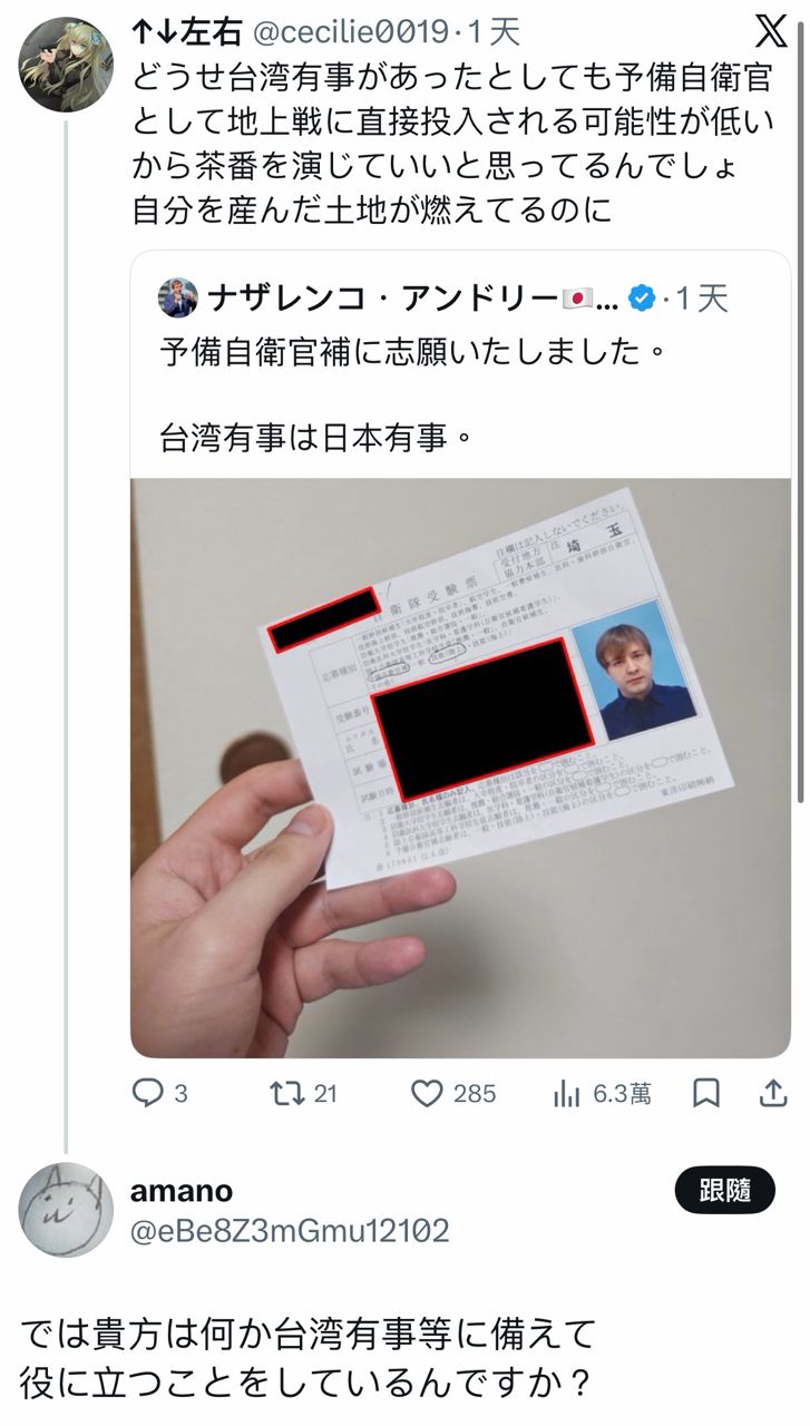 就算到時候真的台灣有事好了,也不太可能會直接派遣預備自衛官打地面戰,所以就當作