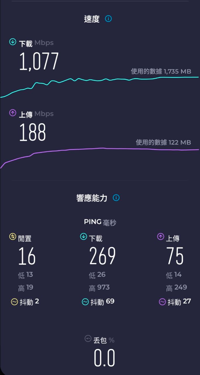 隨手測就跑滿速 所以低資費的網速是真的有被閹割到