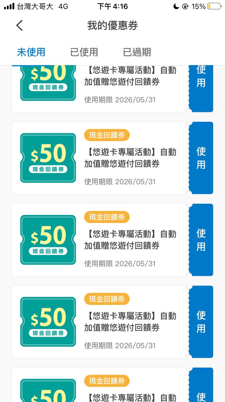 使用點下去,去中油加50元或線上買票卷3F 04/15 16:27