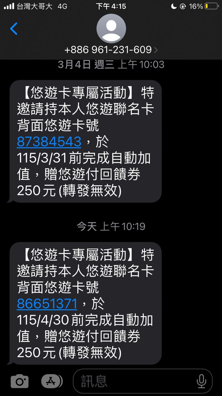 自動加值,贈悠遊付回饋券250元(轉發無效)