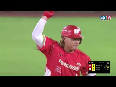 讓龍隊的李凱威打出中外野高飛球