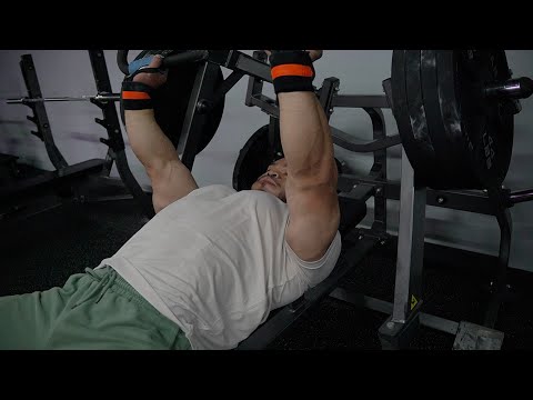 : 他第三次做臥推,發力和軌跡都不習慣,手抓很緊正常.