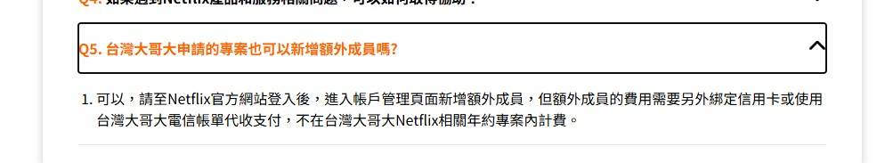 但是以台哥大的官網上的QA寫說是可以到Netflix官網加購額外成員