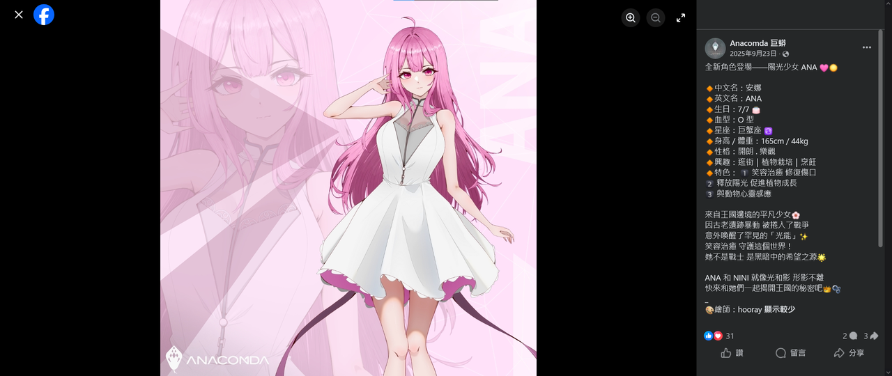 雖然巨蟒晚了一步,但還是在去年初公開二次元形象霓霓(Nini)