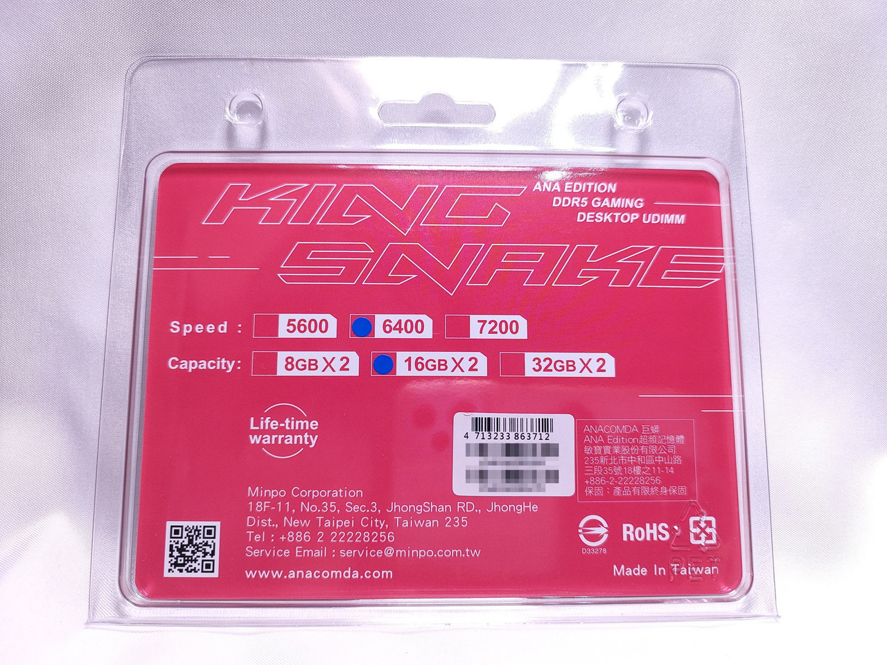 型號屬於王蛇(KS)系列,為巨蟒無光超頻條