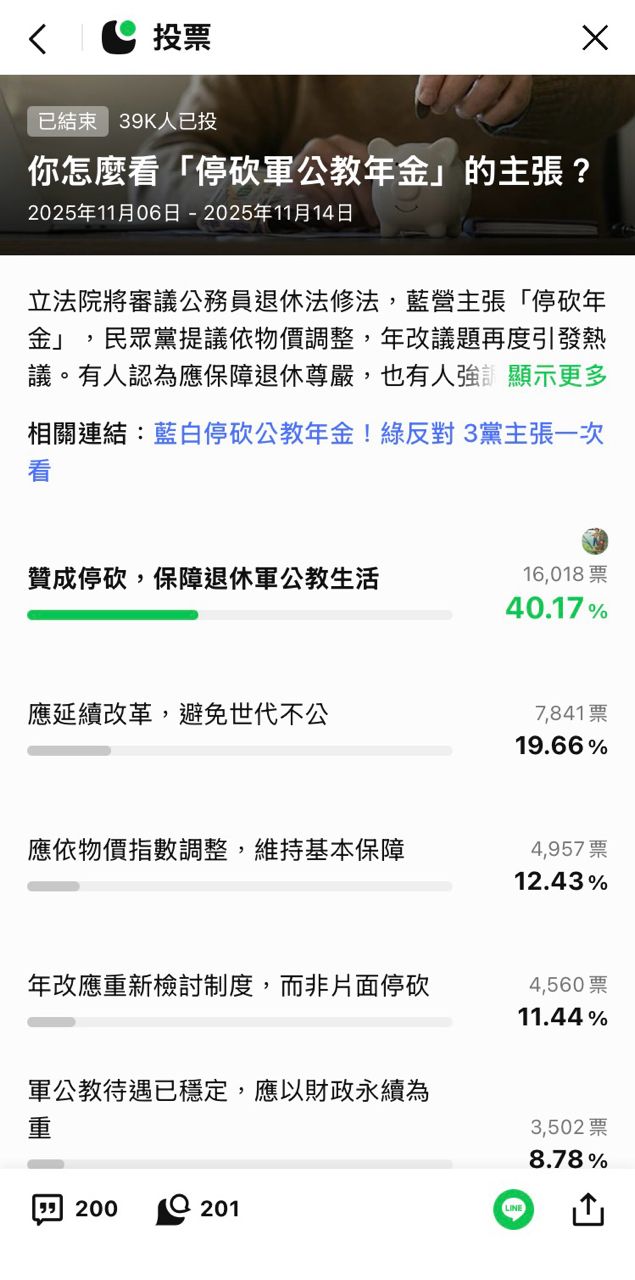 噓 kiwifruit: 只要講到勞保改革,原po就會推給藍白是立法多數,又不講公保了,要護航也強一點可以嗎...40F 11/15 13:07