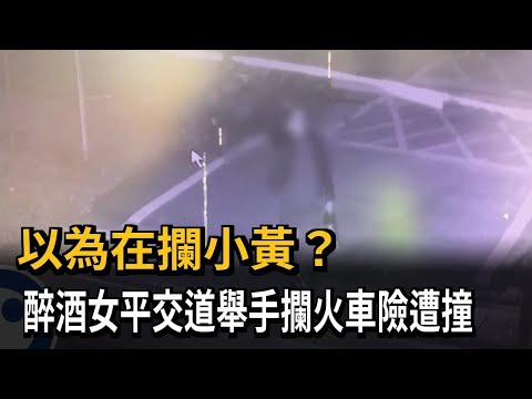 以為在攔小黃? 醉酒女平交道舉手攔火車險遭撞