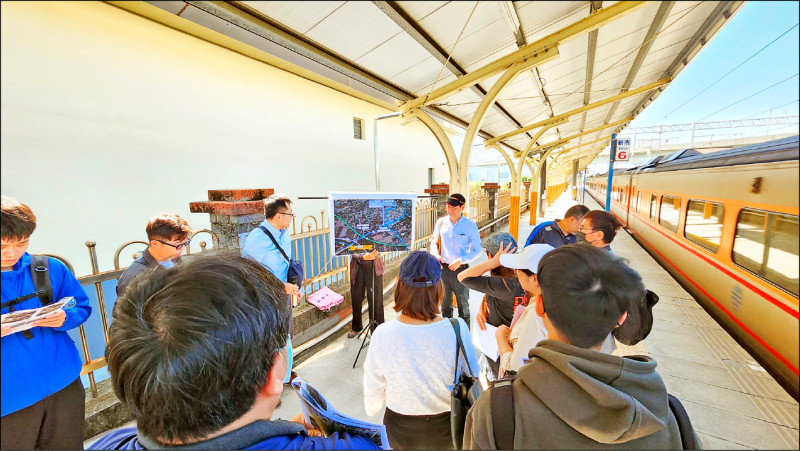 交通部鐵道局主秘陳慧君等人,昨天前往新市火車站及新市鐵路立體化的起點與終點、中