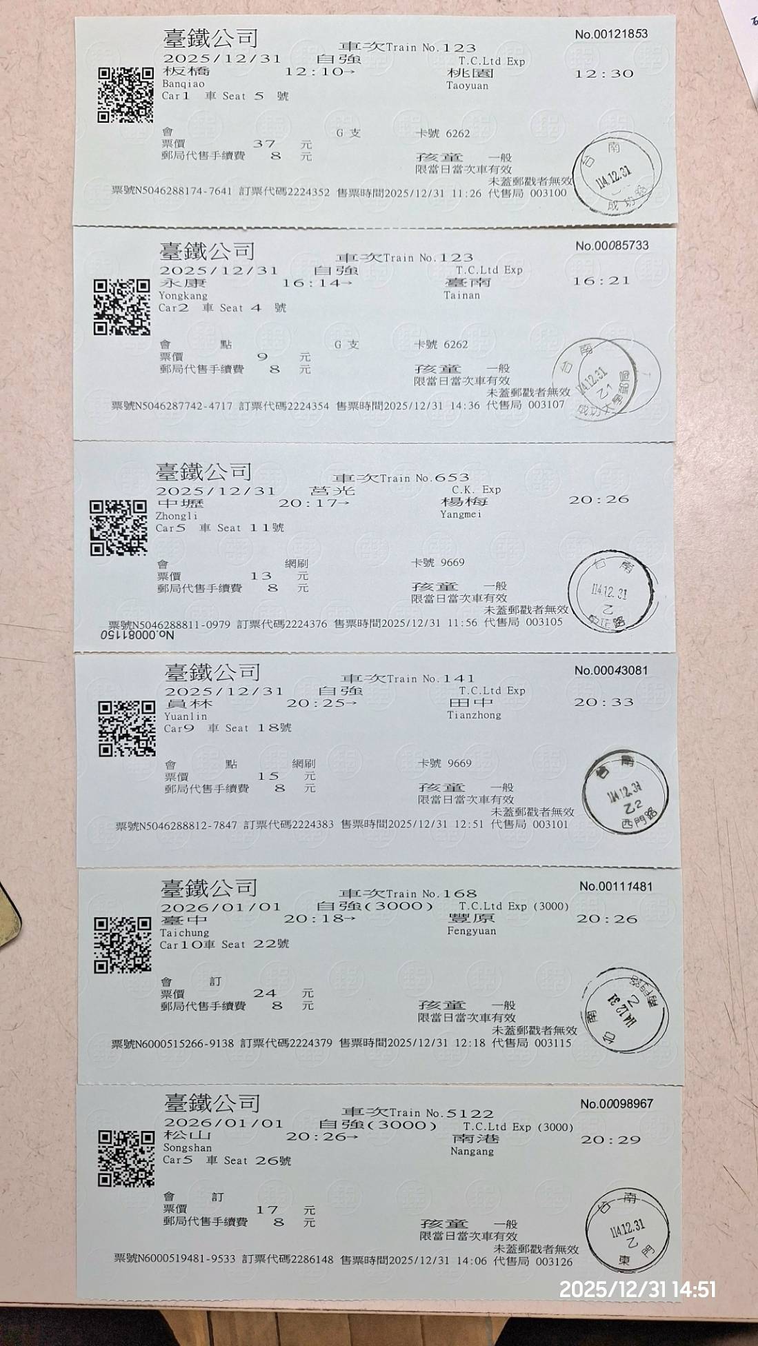 作者 temu2015 (TEMU2015)標題 [閒聊] 郵局代售台鐵車票末日時間 Wed Dec 31 21:56:18 2025