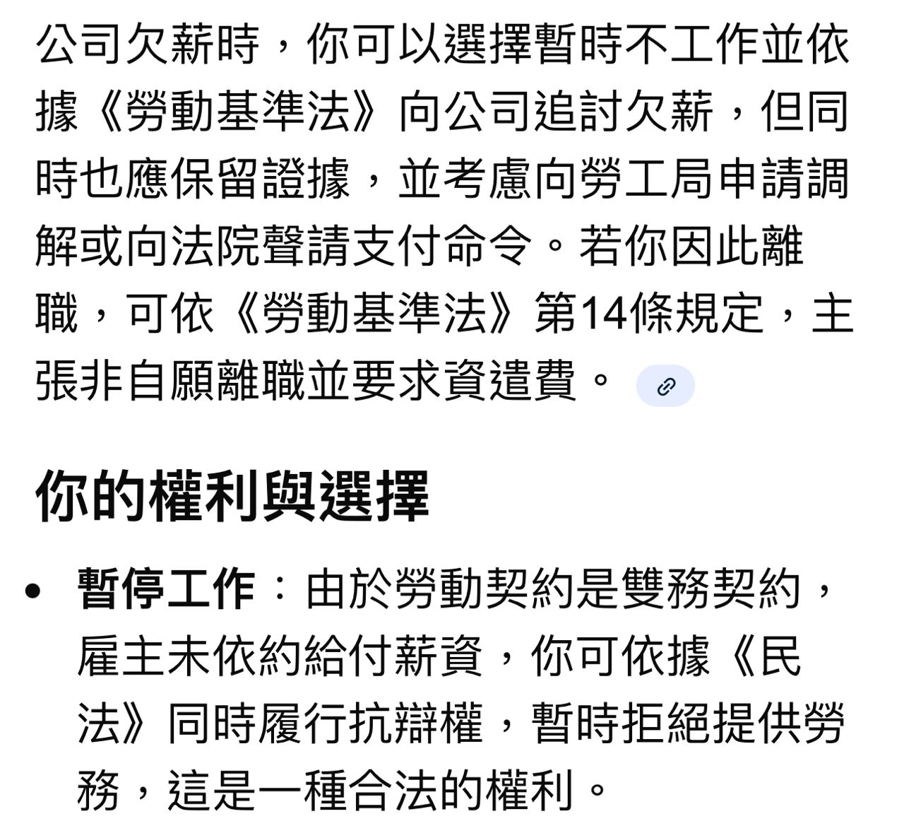 位前輩們,能否跟主管要求,公司欠薪拒絕出班,謝謝大家!