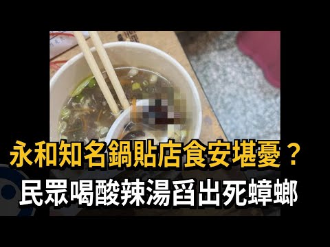 永和知名鍋貼店食安堪憂? 民眾喝酸辣湯舀出死蟑螂