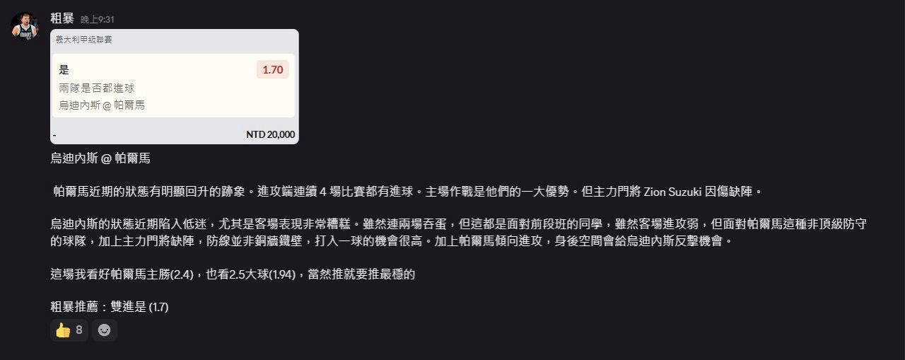 [LIVE] 義甲 烏迪內斯2:0帕爾馬 場中 - SportLottery 板