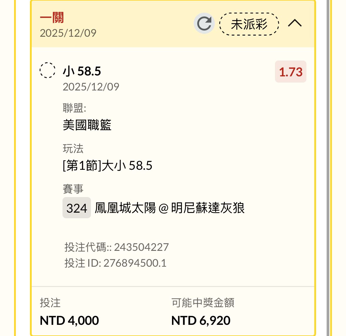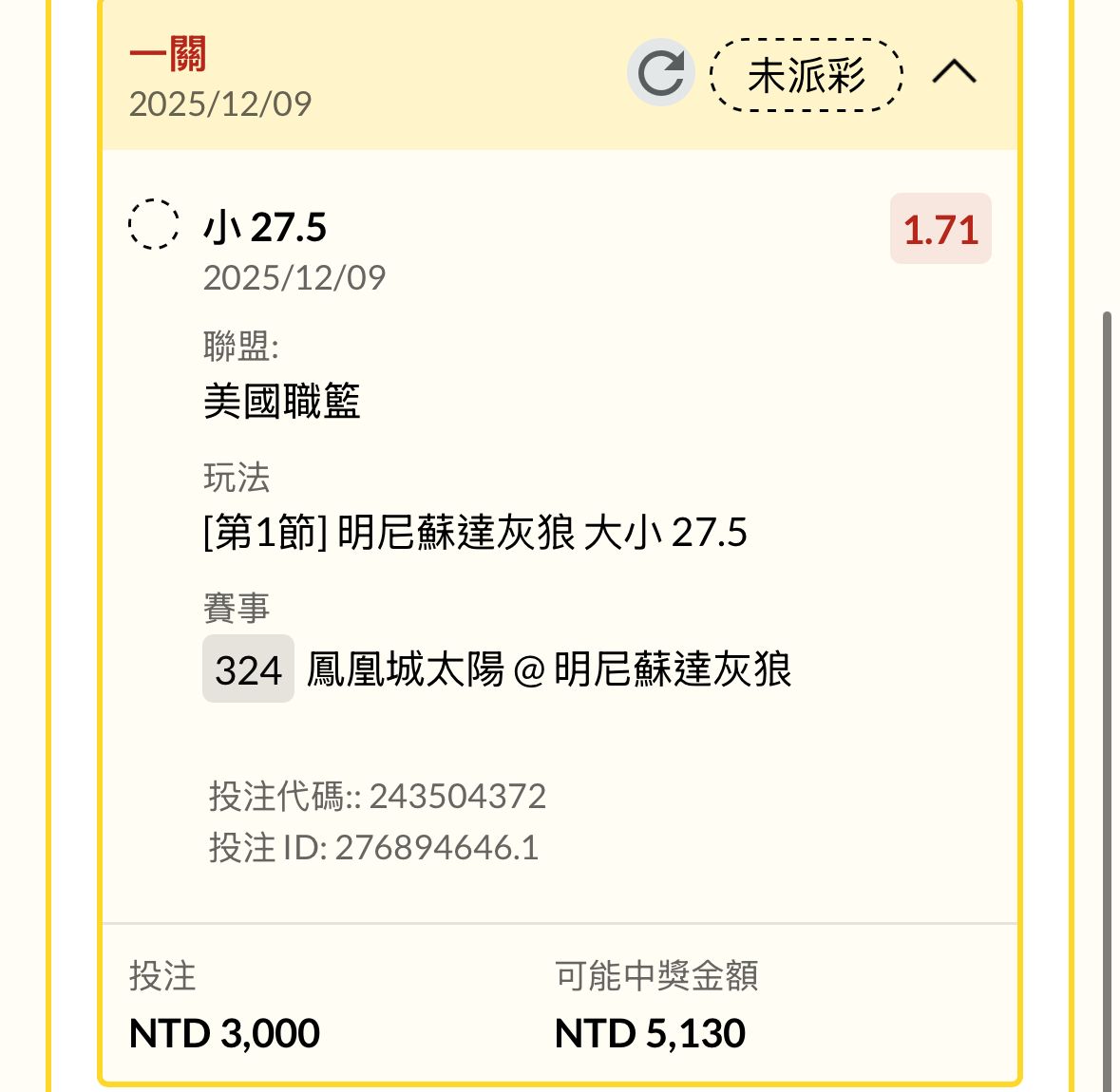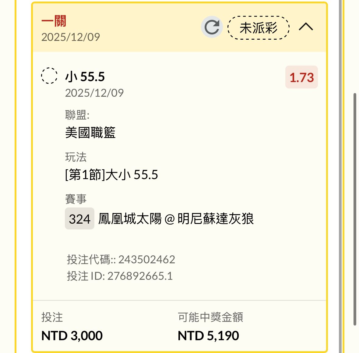 ※ 文章網址: https://www.ptt.cc/bbs/SportLottery/M.1765240306.A.9DD.html