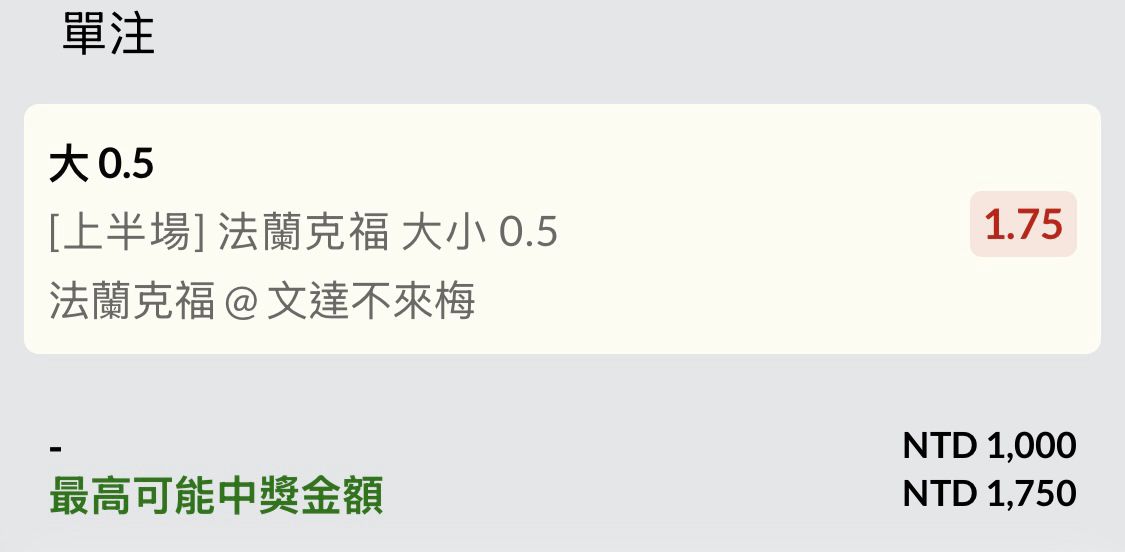 : 阿梅賠率看起來上半就有球 所以想拼上2