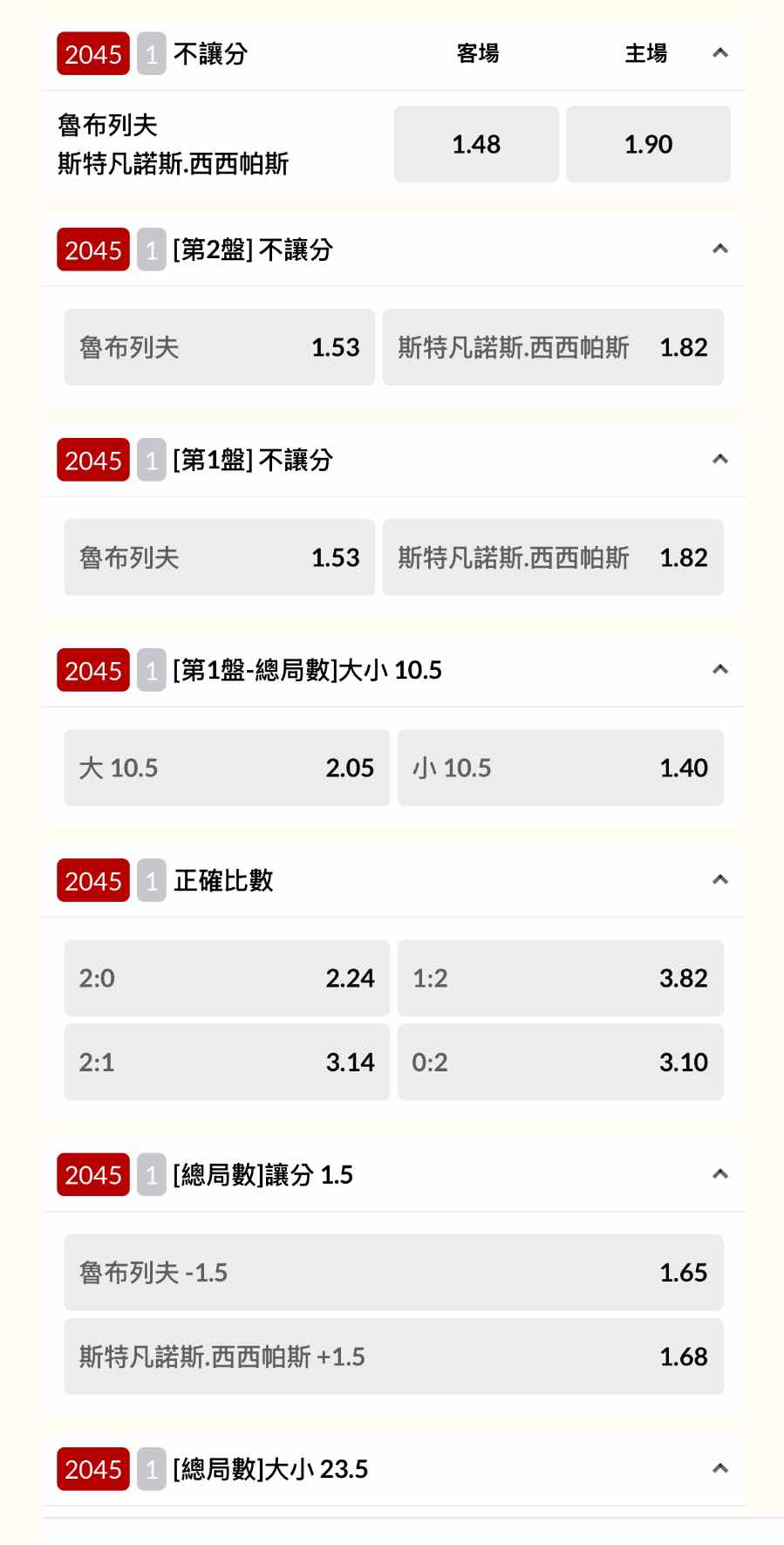 [LIVE] 網球 魯布列夫 @ 西西帕斯 場中 - SportLottery 板