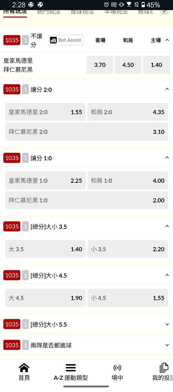 [LIVE] 皇家馬德里 @ 拜仁慕尼黑 場中 - SportLottery 板