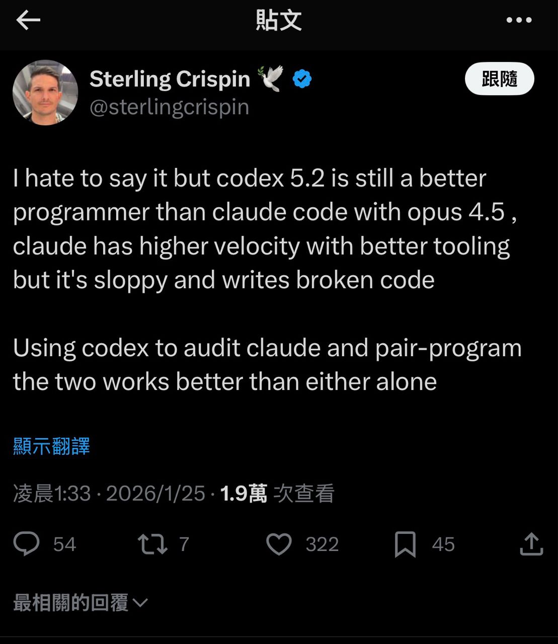 → LimYoHwan: Coding用很兇的人,全部都會用啦,各有優缺點,但體感,codex最強,只是速度慢。並不像車子一樣,大部分人選一種品牌65F 02/06 23:27