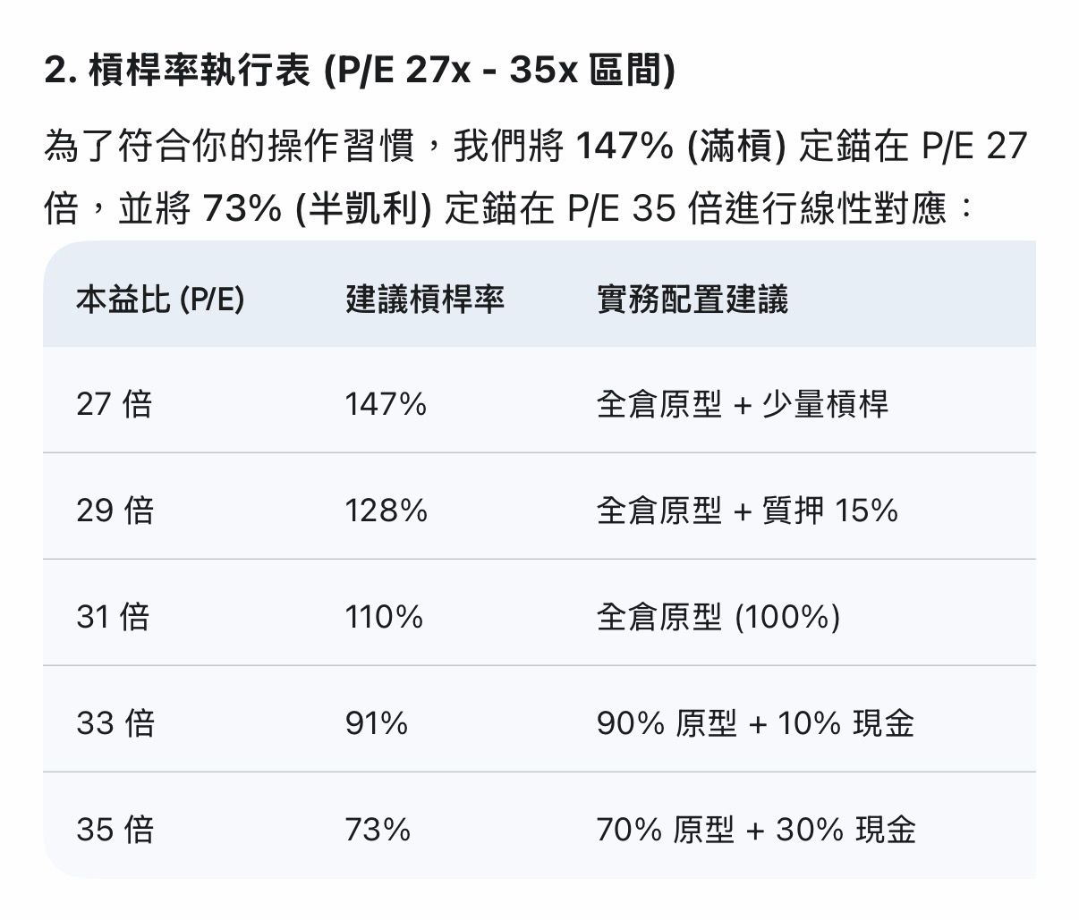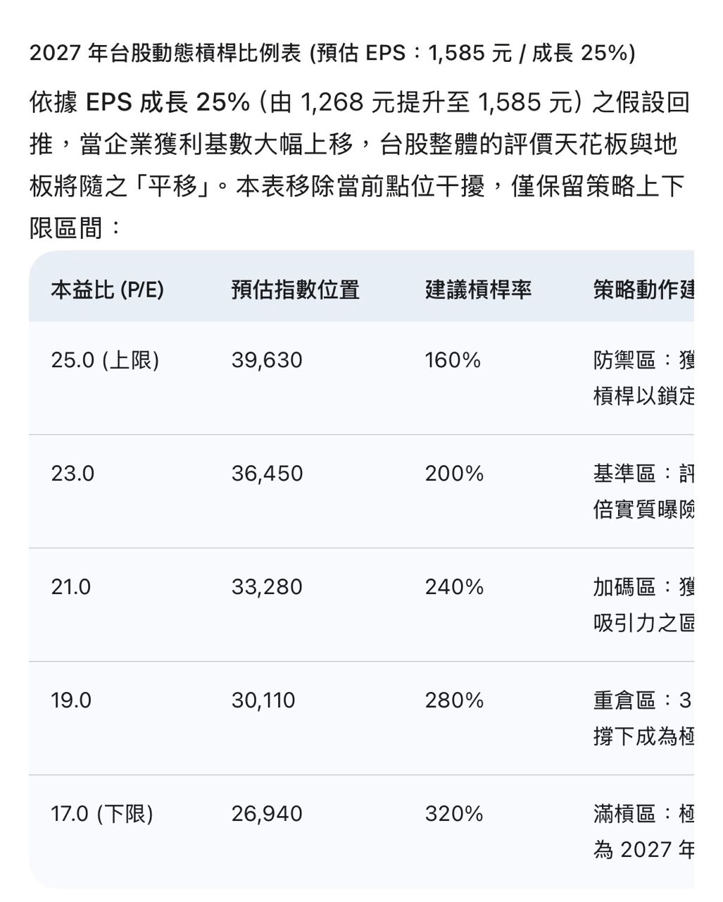 目前33600點,本益比26.5倍,則我們可以按照對應的點數來調整槓桿: