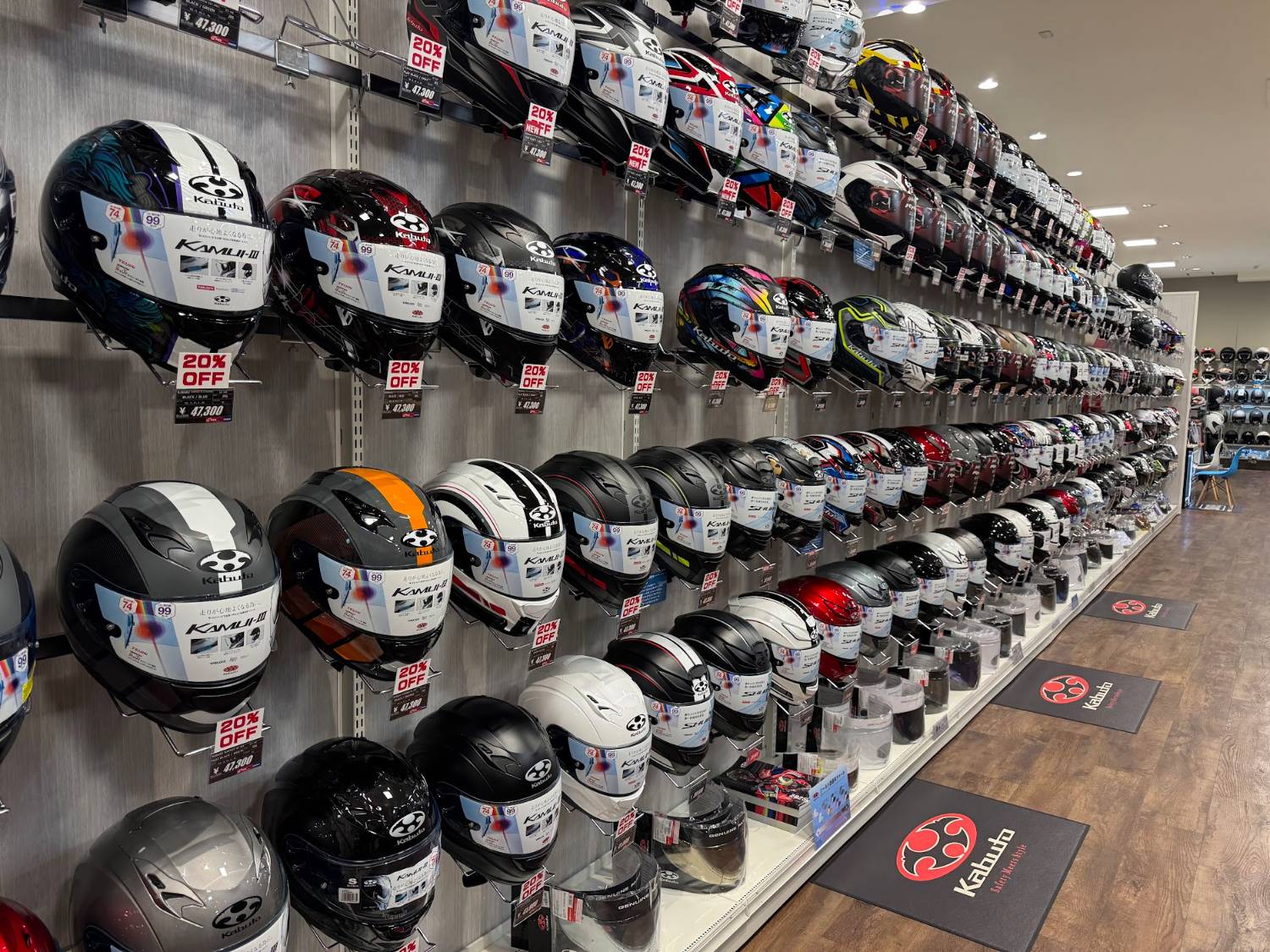 櫃檯就在SHOEI安全帽牆的隔壁