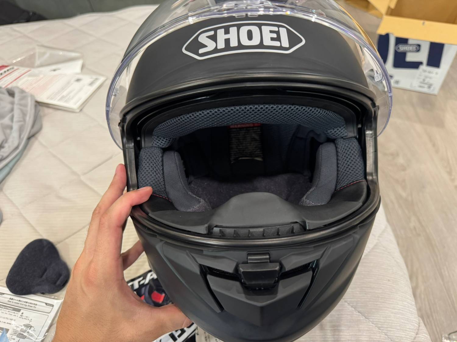 向店員表明了沒有關係,他就請我確認一下安全帽的外觀那些