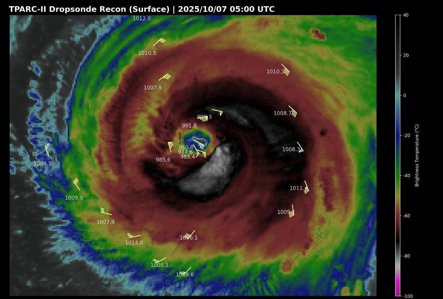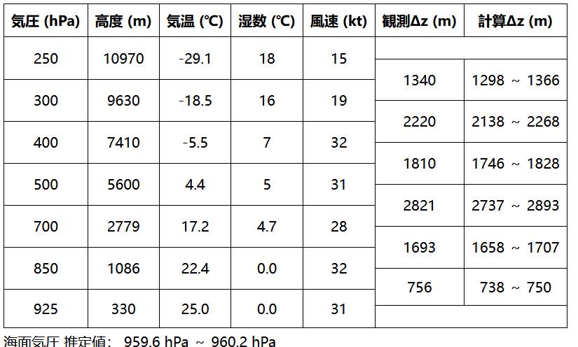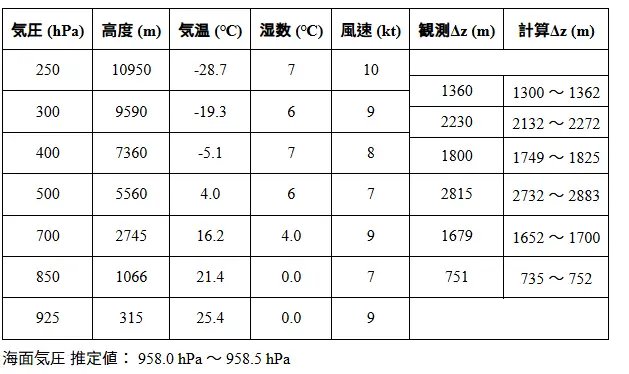 第一次數據回傳結果後約50分鐘,投落儀在中心測得960百帕