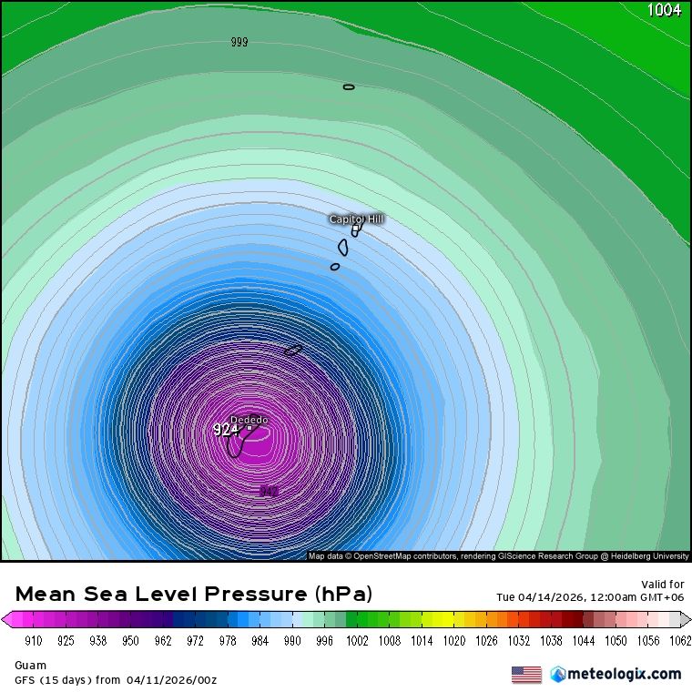 : GFS 923百帕風眼 直擊關島