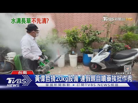 揹20kg設備噴藥 黃偉哲挨批作秀 市民:先除雜草吧|TVBS新聞