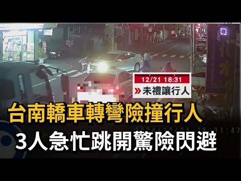 台南轎車轉彎險撞行人 3人急忙跳開驚險閃避 - 民視新聞網