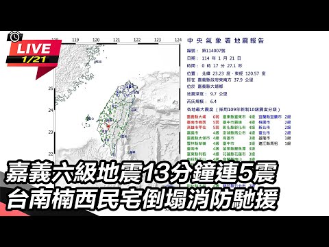 【影片】【#直播中LIVE】嘉義六級地震15分鐘連6震 台南楠西民宅倒塌消防馳援
