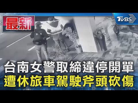 違規停車時,竟遭情緒失控的民眾持斧頭瘋狂揮砍,女警肩膀、背部被惡狠狠地砍中兩刀
