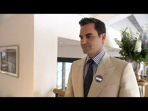 費爸在歡呼之下進入中央球場皇家包廂