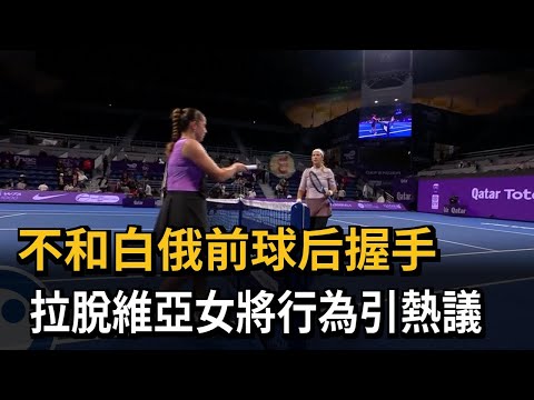 體育中心/江皇萱、游博智報導前白俄羅斯網球球后阿薩蘭卡(Azarenka),在卡達公開賽16強獲勝後,拉脫維亞對手奧斯塔朋科(Ostapenko)用球拍取代握手,引發熱議。過去類似狀況都是因為俄烏戰爭,但其實今年前兩次對戰,奧斯塔朋科都有跟他握手,因此外界推測,可能是因為拉脫維亞近期禁止選手與雙俄選 ...