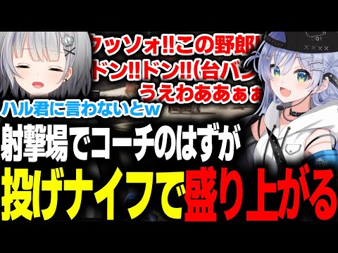 射撃場でコーチのはずがいつのまにか投げナイフで大盛り上がりする2人ww