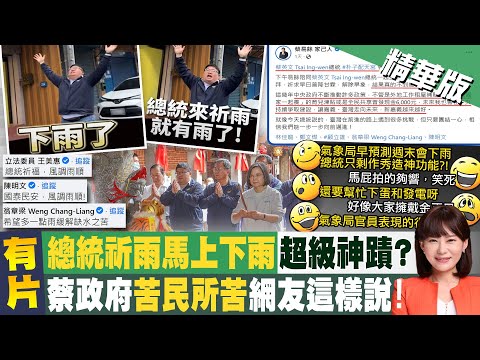 春雨解決旱象。嘉義縣立委蔡易餘當天也隨即在社群網站表示,「總統來嘉義祈雨,馬上就