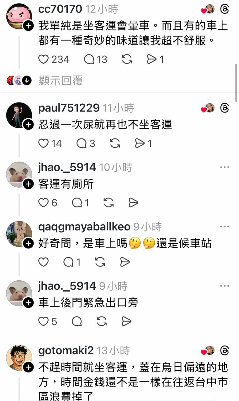 : 客運那個味道一上車就噁爛 實在太痛