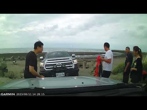 玩到一半,ㄧ台好帥的皮卡車也開上來沙灘上,他可能沒關防滑,外加車太重又是公路胎