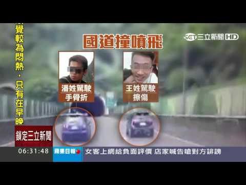 後面藍色mini直接高速撞另外一台 重點是藍色撞人的 車上還有老婆小孩