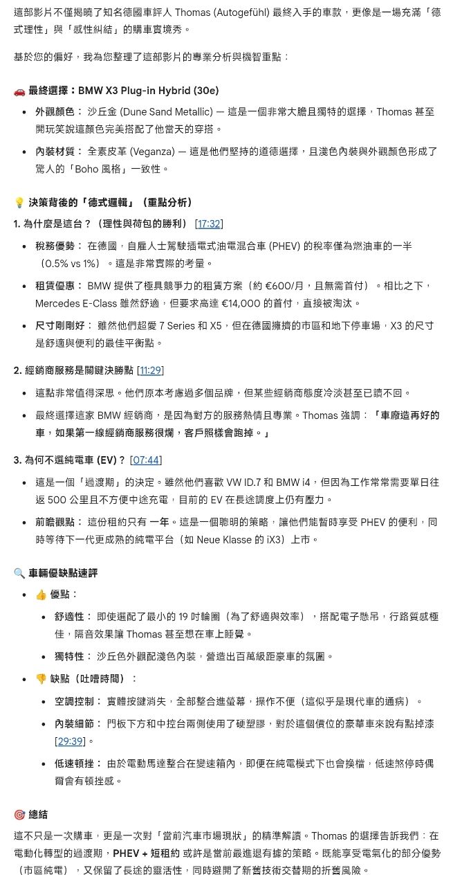 3.也想過買純電車例如VW ID7,但是考量到跑活動一天來回500公里,想買中途一次都不用充電的,iX3和GLC EQ辦得到但還沒辦法馬上交車,下一台也許就買純電了,雖然純油車還是很棒但德國稅制對於自營工作者來說,買純油車非常苛刻,只能考慮PHEV或者BEV才划算。