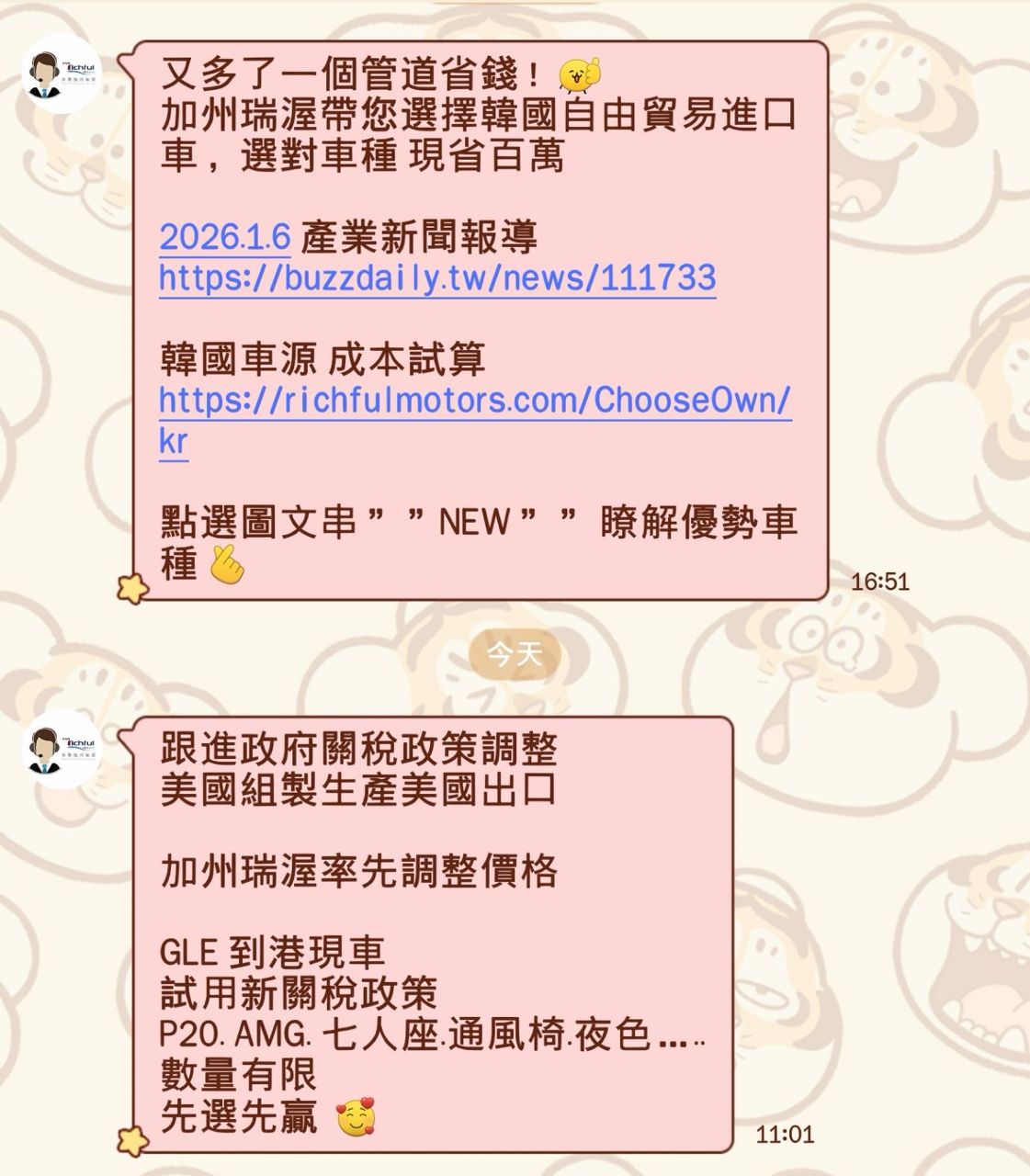 關稅即將談妥,但各大車商紛紛打預防針 我知道大家會說還有外匯車商啊 但外匯車商也不降價呢? 大家集體不降價,吃關稅的利潤吃飽飽 不管總代理或外匯商都不降你能怎樣? 買車也找不到別人可以買了啊! 你說 …