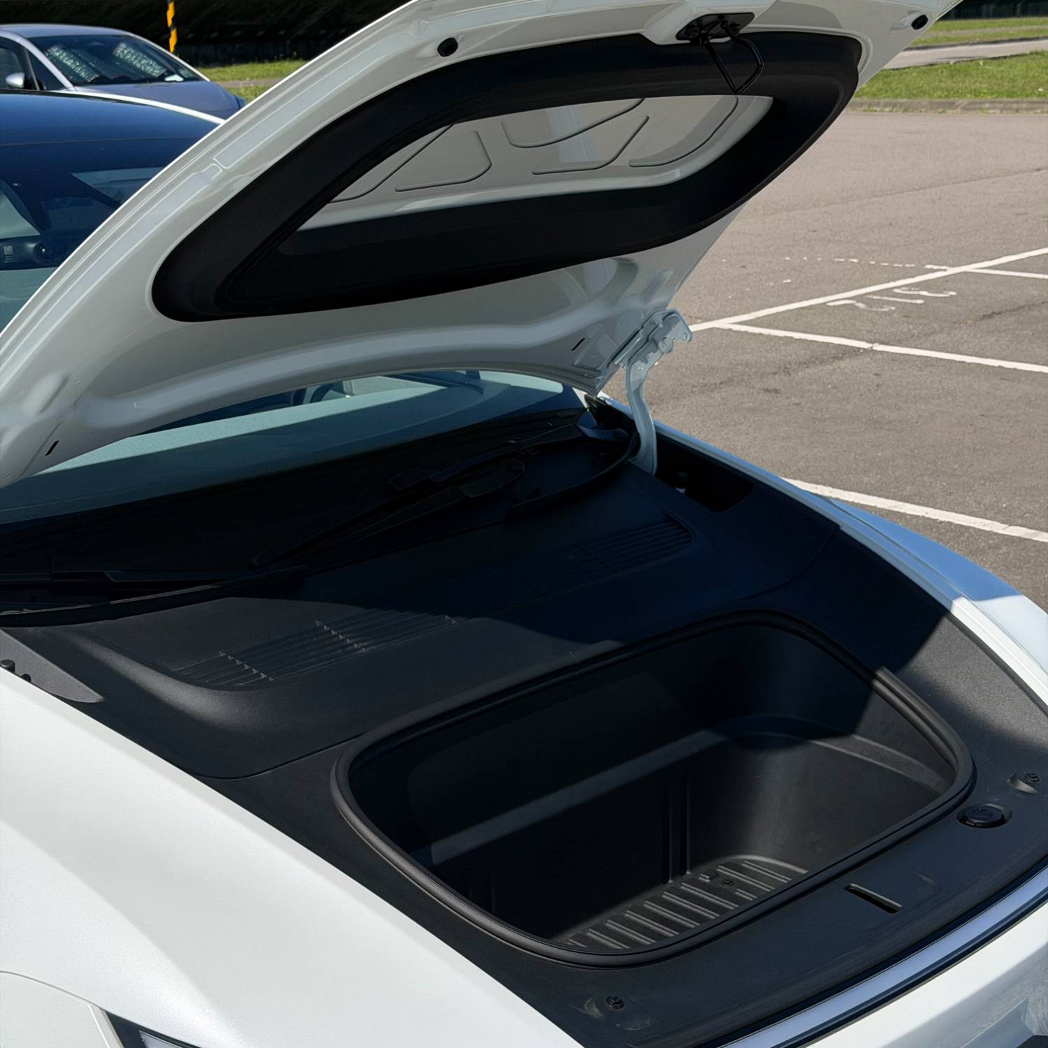 整台車的置物空間也很多中央扶手很深可以放超多東西,有前行李箱硬是比油車多了一個