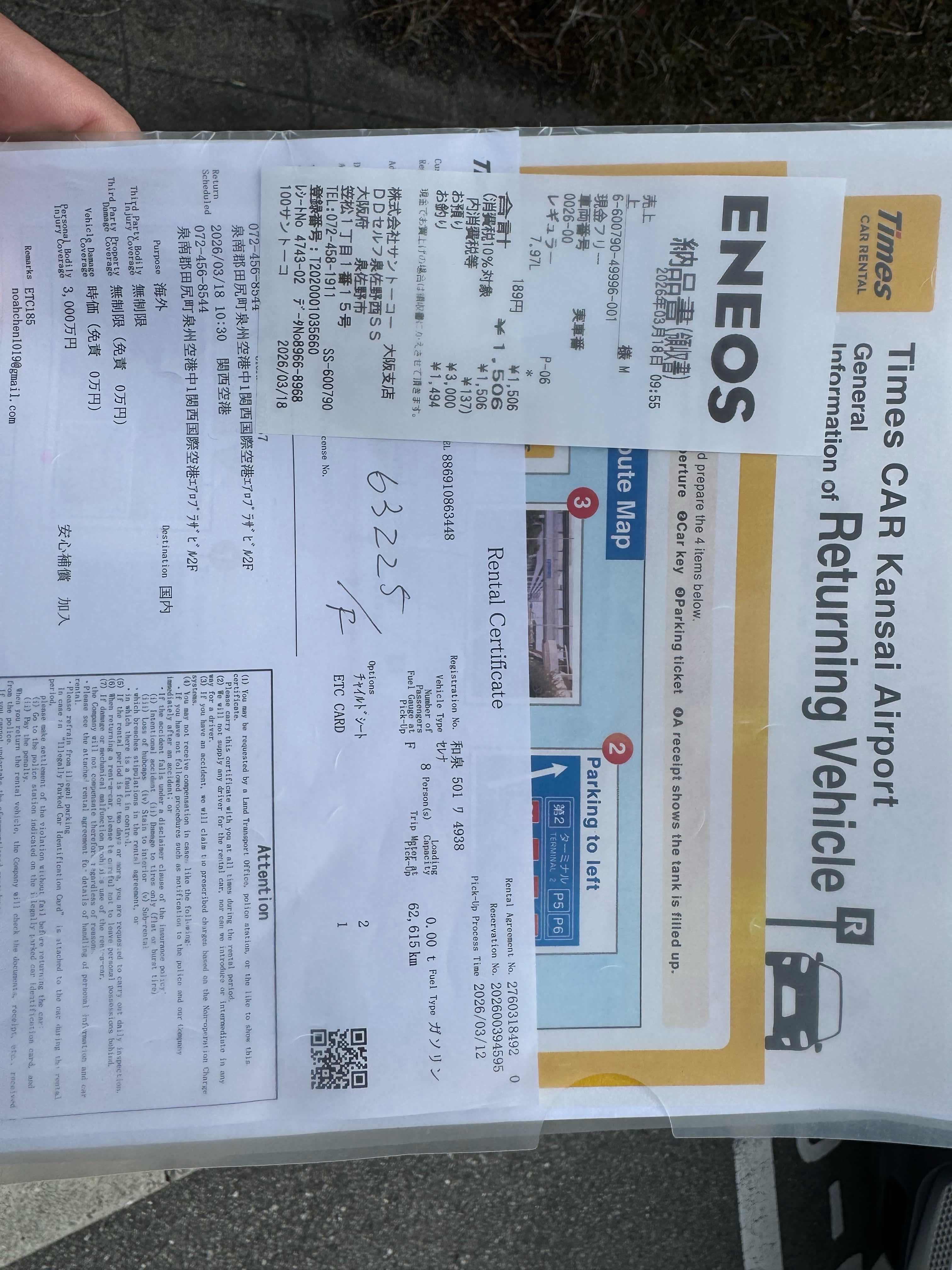 開了大概615公里 油錢大約是4800+1500日幣
