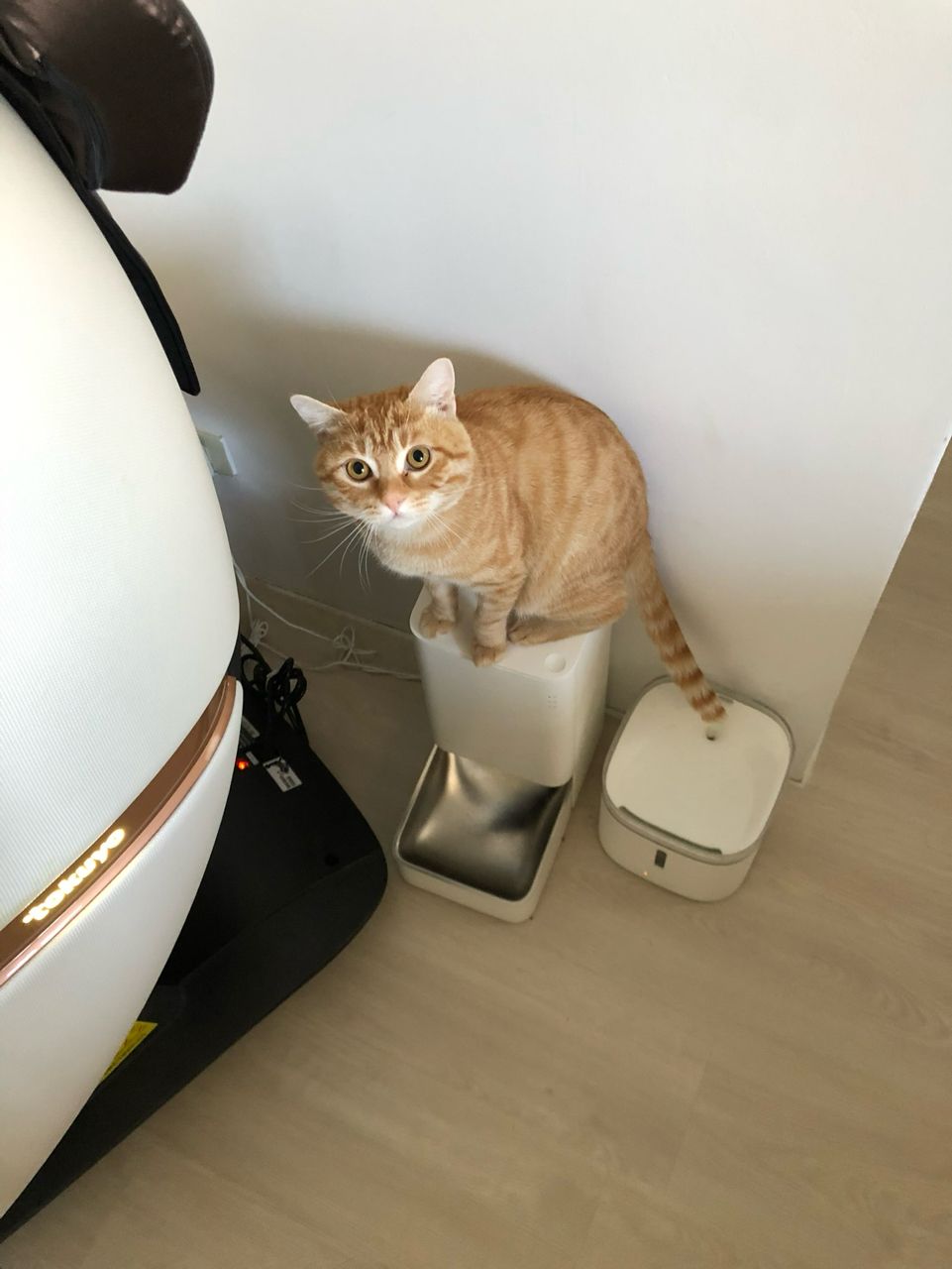 會連同智能貓砂盆、背包、智能飼料機、頂天立地貓跳台一併送出,建議開車來收養
