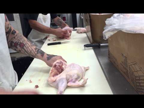 基本上就是依序把如下的部位拗折到脫臼,再翻開將肉剔離骨頭再拔出:脖子、胸骨、兩邊
