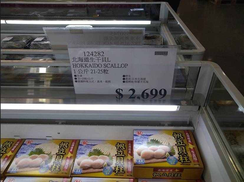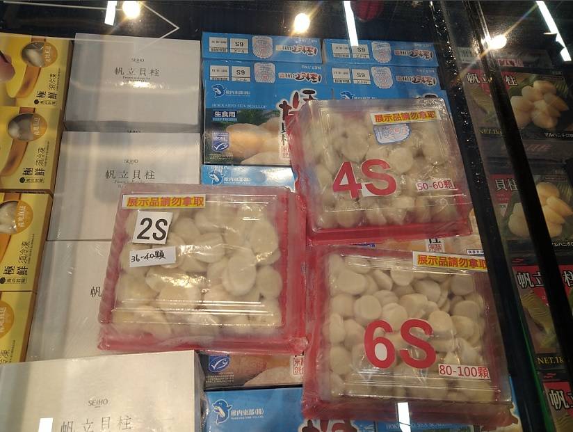 北海道生干貝 2S 1kg $2xxx(忘記是2400還2600,等級那張圖白色盒子裝的)